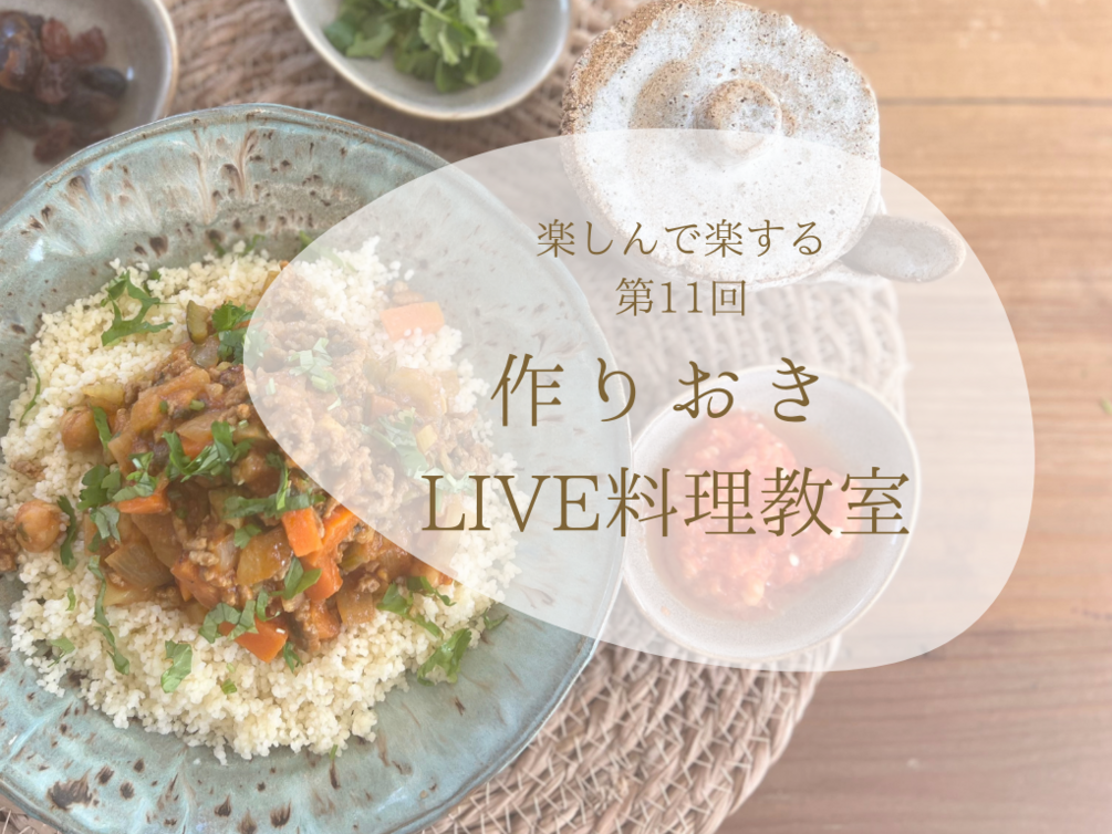 自宅のキッチンと世界のキッチンを繋ぎ、2時間で7品、約1週間分のおかずを作りおきをするライブ料理教室です。